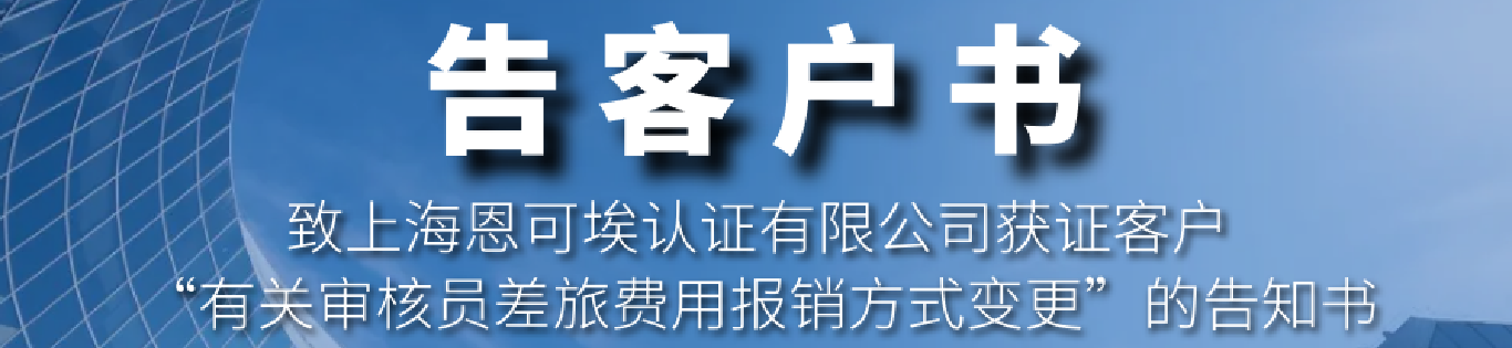 致上海恩可埃认证有限公司获证客户“有关审核员差旅...